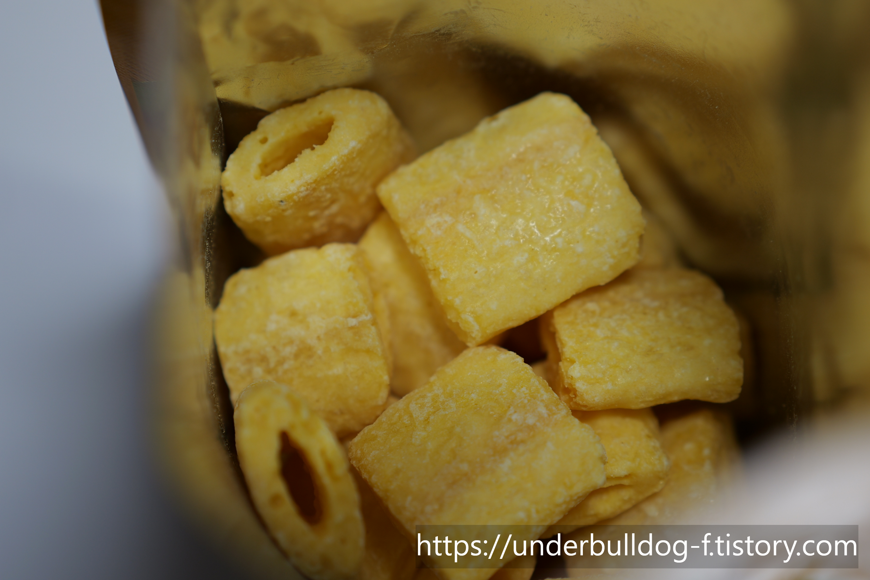 네. 한입 크기의 사각형 칩 모양이라 일반 콘스낵보다 콘셉트가 더 분명하게 느껴집니다.