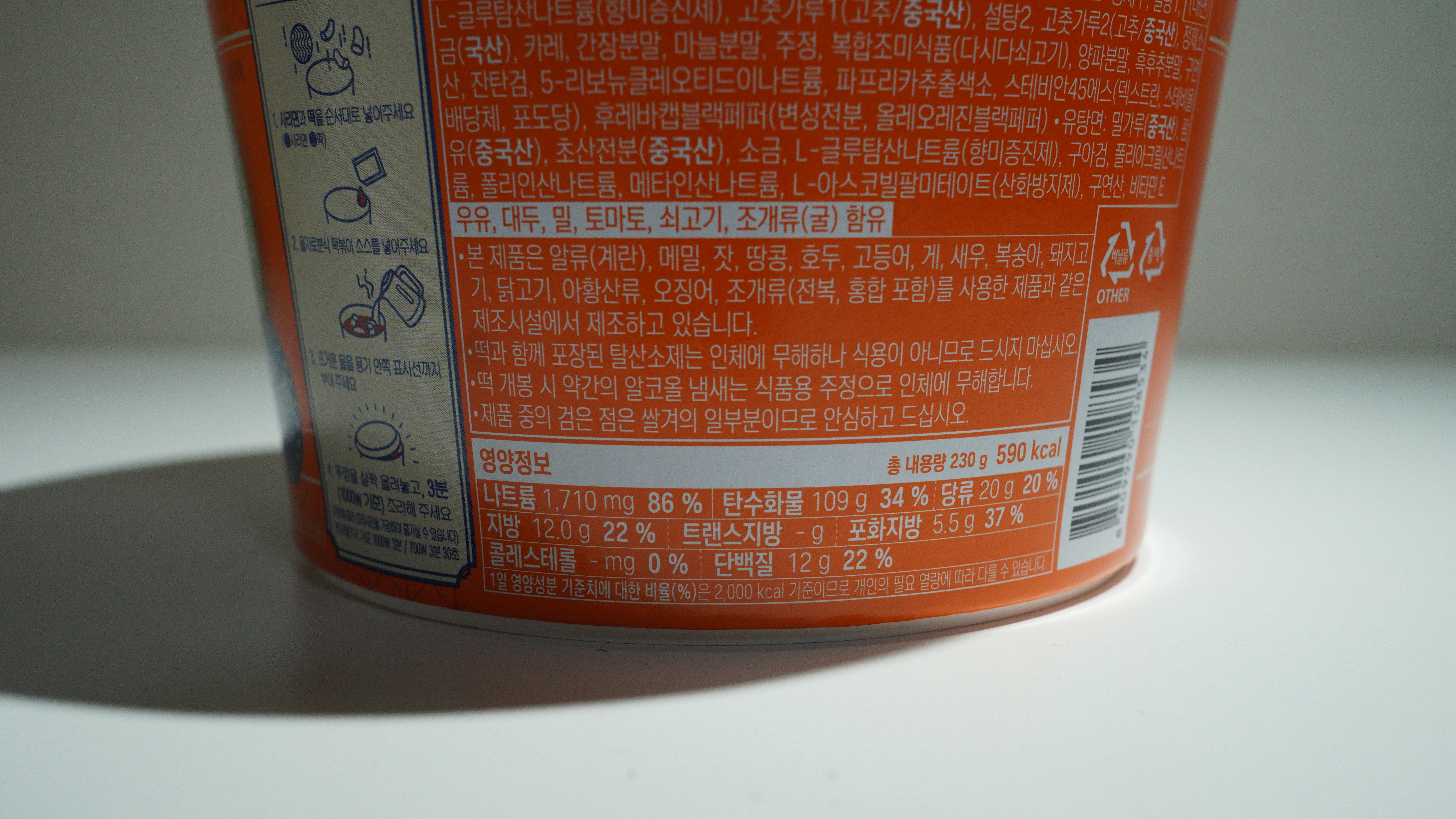 이 제품의 정체성은 이름 그대로 ‘꼬들한 면발’에 있습니다. 일부 후기에서는 사리면이 우리밀 사리면이라는 점을 장점으로 짚기도 했고, 실제로 라볶이를 “떡볶이+라면”이 아니라 “면식감이 살아있는 분식”으로 만들려는 방향이 보여요. 다만 꼬들함은 조리 타이밍에 따라 “식감”이 될 수도, “덜 익음”이 될 수도 있죠. 그래서 이 제품은 맛을 평가하기 전에 조리법을 정확히 타는 게 먼저입니다. 기본 조리는 용기에 면→떡→소스를 넣고, 뜨거운 물을 표시선까지 붓고, 뚜껑을 살짝 얹은 채 전자레인지 3분(1000W 기준) 조리하는 방식으로 안내돼요. 여기서 물이 적으면 면이 뻣뻣해지고, 물이 많으면 소스가 묽어져 ‘라볶이’보다는 ‘국물라면’ 쪽으로 흐르니 표시선이 생각보다 중요합니다.